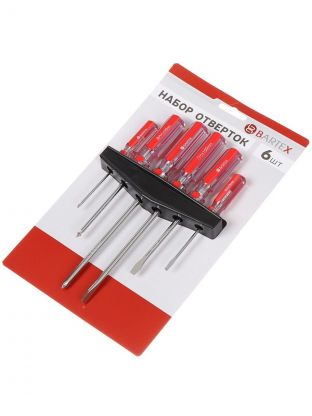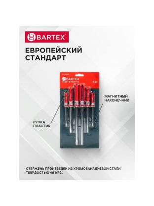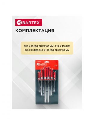 Набор отверток 6 предметов, Bartex, PH 0,1,2/ SL 3,5,6, ручка пластиковая, CrV сталь, блистер