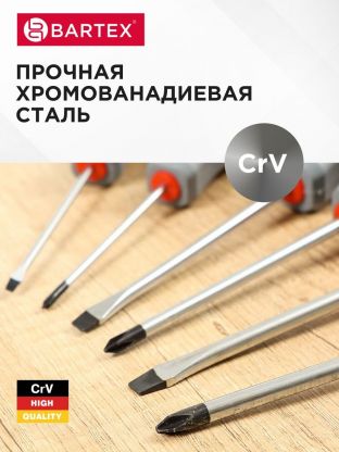 Набор отверток 6 предметов Bartex – надежный инструмент для любых домашних и дачных работ. В комплекте представлены отвертки с плоским и крестовым наконечником, что делает его универсальным решением для большинства задач по ремонту и сборке мебели, бытовой техники и других изделий. Высокопрочная CrV сталь обеспечивает долговечность и устойчивость к износу, а двухкомпонентная рукоятка гарантирует удобство и надежный хват даже при длительном использовании. Благодаря магнитным свойствам наконечников, работа с мелкими крепежными элементами становится значительно проще и быстрее, что особенно важно при выполнении точных операций.