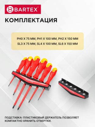 Покупка набора отверток Bartex — это гарантия быстрого и качественного выполнения ремонтных задач без лишних затрат времени и усилий. Набор станет выгодным приобретением для тех, кто ценит надежность, удобство и универсальность инструментов для дома и дачи.