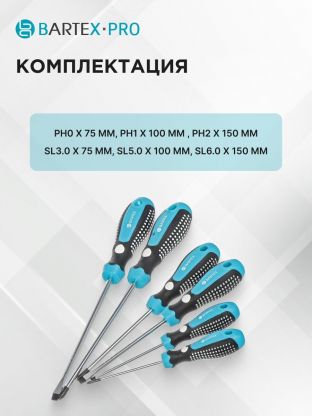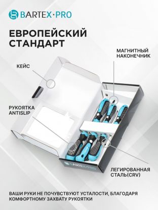 Bartex — это бренд, который выбирают за качество и надежность. Комплект отверток подходит для сборки мебели, ремонта бытовой техники, работы с электроникой и других задач, возникающих в доме или на даче. Благодаря прочной конструкции и эргономичному дизайну, инструмент прослужит долго, сохраняя высокую производительность и удобство использования.