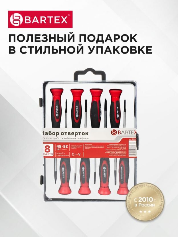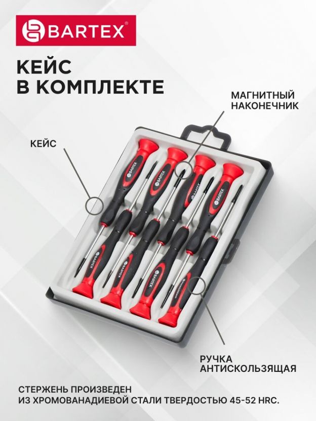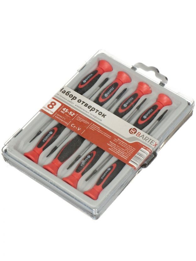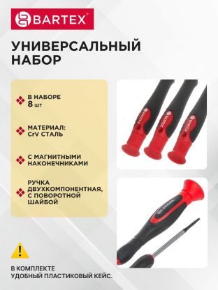 Набор отверток для точных работ, 8 предметов, Bartex, двухкомпонентный, CrV сталь, для мобильных телефонов, кейс