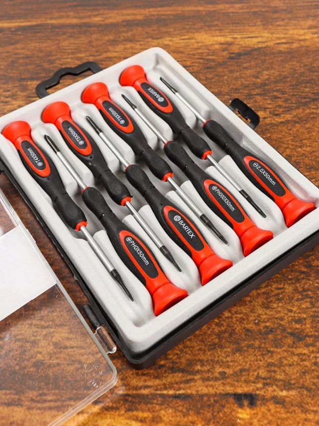 Набор отверток для точных работ Bartex — идеальный выбор для тех, кто ценит надежность и удобство при ремонте мобильных телефонов и другой мелкой электроники. Компактный кейс удобно хранить дома или брать с собой на дачу, чтобы всегда быть готовым к мелкому ремонту. В комплекте 8 высокоточных инструментов: плоские, крестовые и TORX отвертки с различными размерами шлица, что позволяет легко справляться с большинством задач по обслуживанию техники и гаджетов.