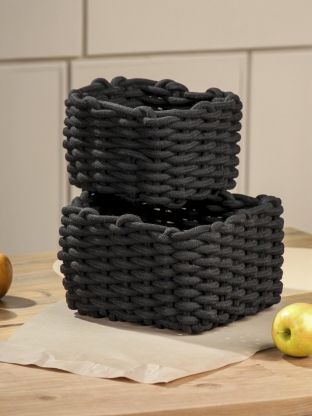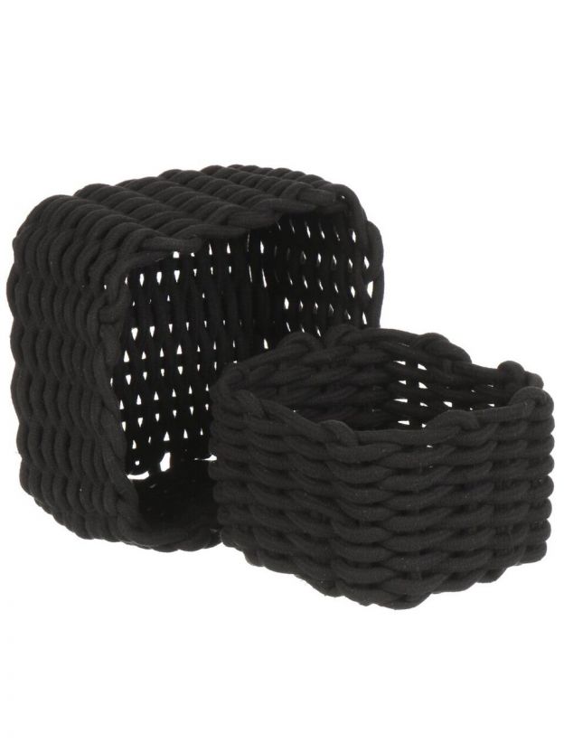 Набор плетеных корзин 2 шт, квадратный, плетеный, хлопок, черный, 23х23х15 см, 18х18х14см, МП, Y4-8946