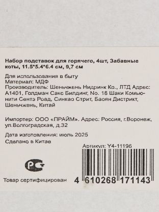 Выбирая набор подставок для горячего, обратите внимание на размеры и материал: здесь оптимально подобраны компактность и прочность, а дизайн с котами добавляет индивидуальности. Если вы ищете, что подарить другу или как выбрать аксессуар для своей кухни — этот набор станет удачным выбором.