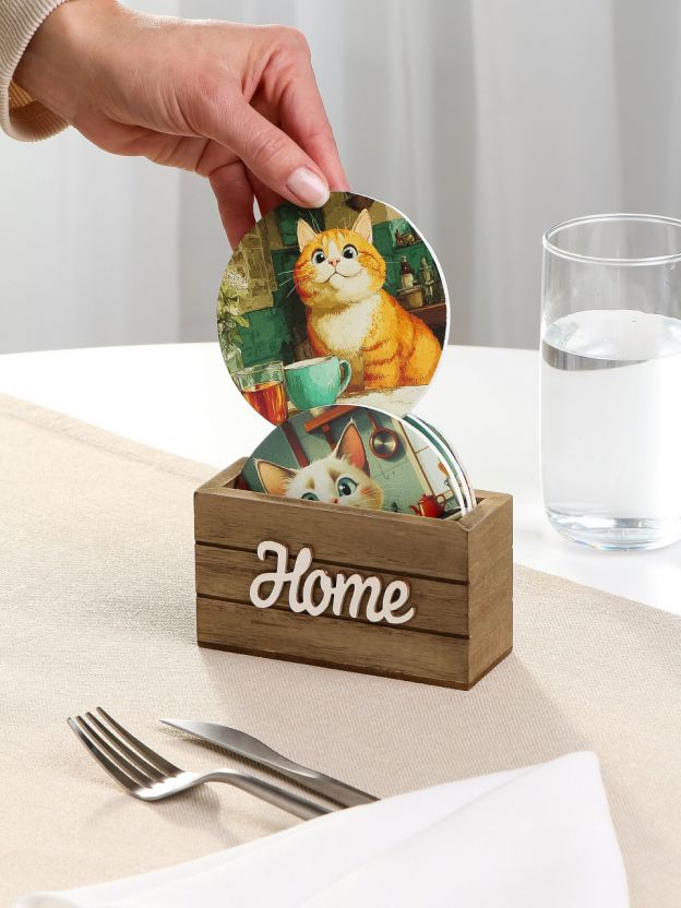 Набор подставок для горячего «Забавные коты» — практичный аксессуар для защиты столешницы от пятен и царапин. Деревянные подставки легко вписываются в любой интерьер благодаря натуральной текстуре и компактным размерам. Часто спрашивают, как использовать подставки для горячего — просто разместите их под чашкой, кастрюлей или чайником, чтобы продлить срок службы мебели.