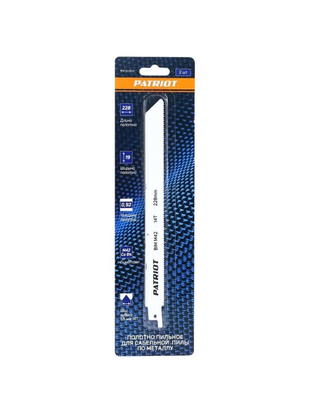 Набор полотен для сабельной пилы 228 мм, 2 шт, 14 TPI, металл, Patriot, 814010512