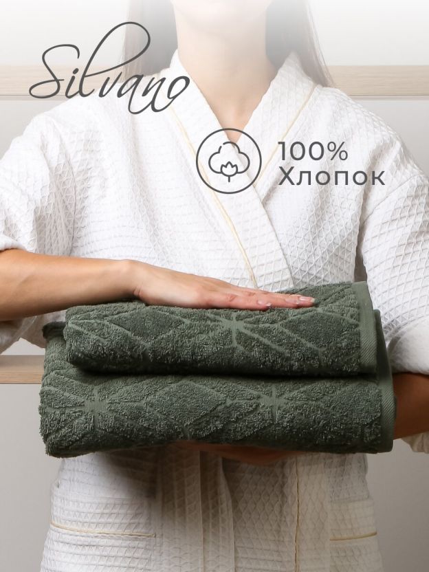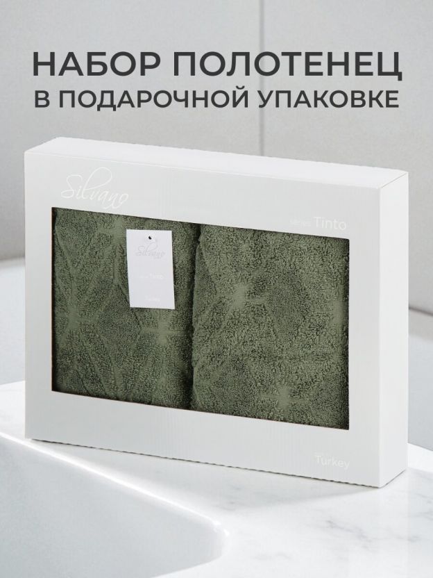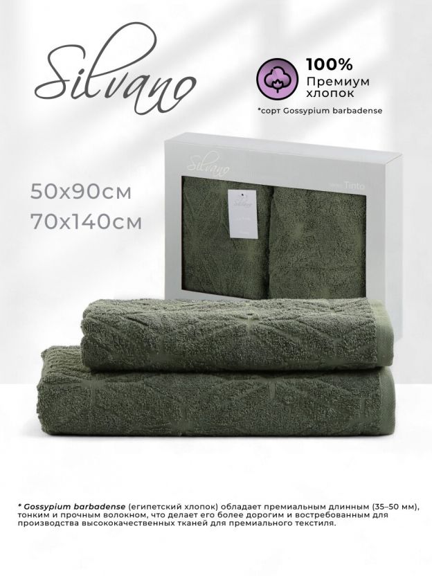 Набор полотенец Silvano Тинто: 2 размера (50x90, 70x140 см), 100% хлопок, 480 г/м2, Турция — мягкость, долговечность и стильный зелёный оттенок для вашего уюта.