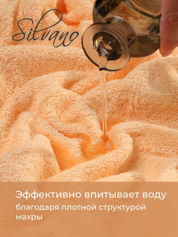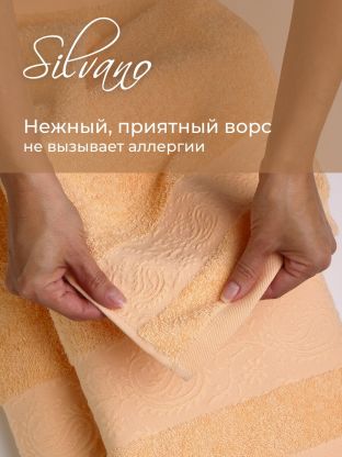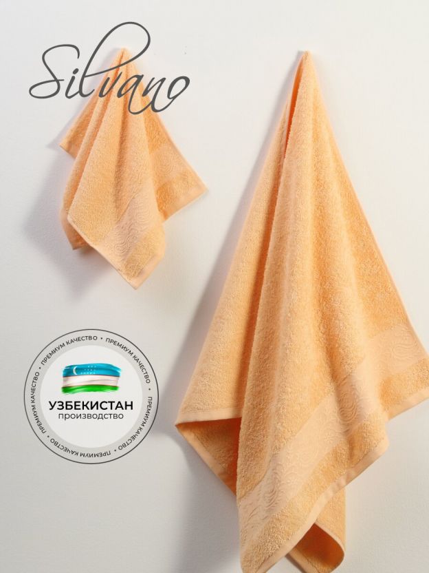 Полотенца произведены в Узбекистане под брендом Silvano, модель «Аврора», цвет — персик.