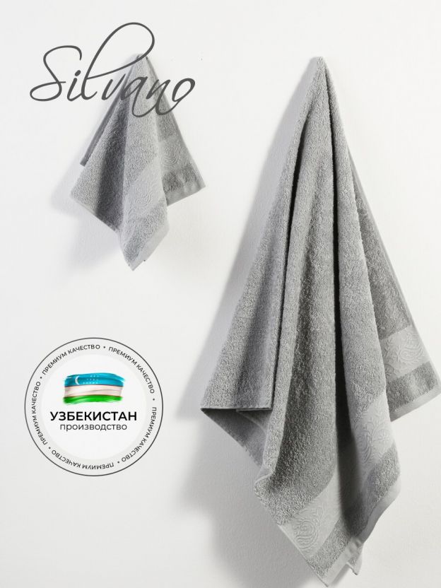 Набор полотенец 2 шт, 30х50, 70х140 см, 100% хлопок, 420 г/м2, Silvano, Аврора, светло-серый, Узбекистан