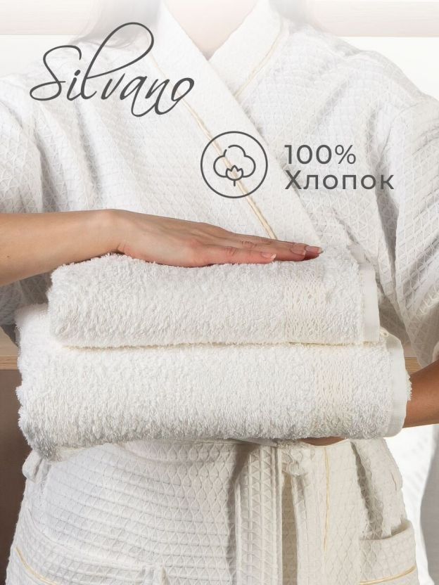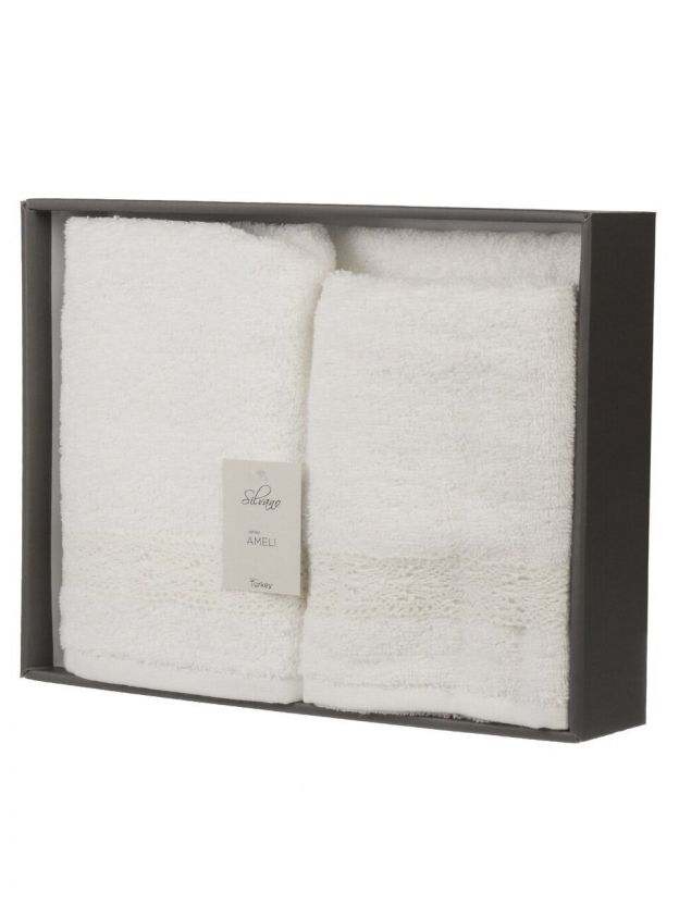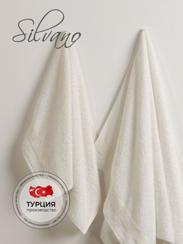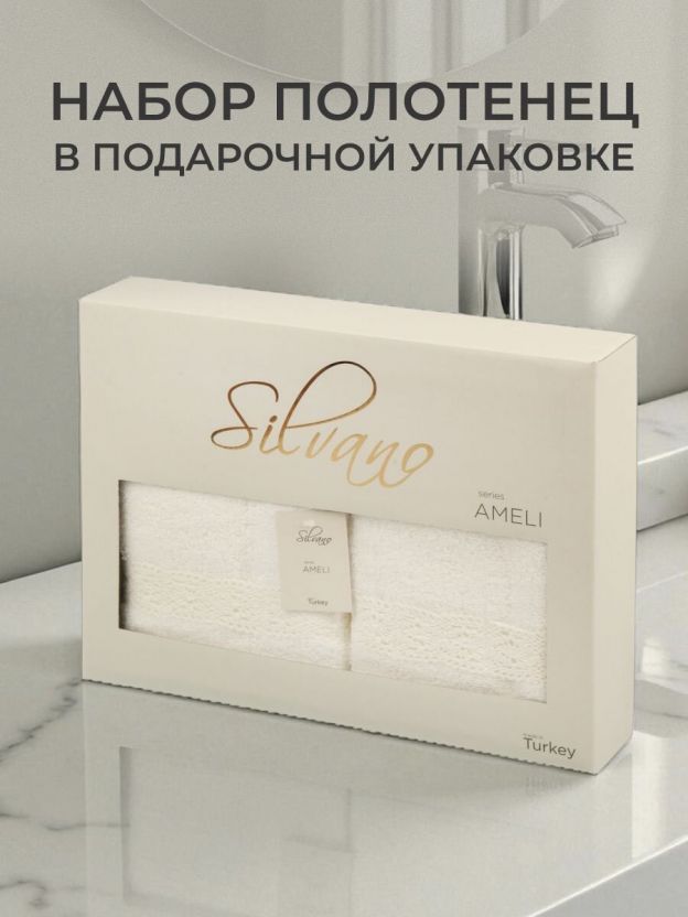 Набор полотенец 2 шт, 50х80, 70х130 см, 100% хлопок, 450 г/м2, Silvano, Амели, молочный, Турция