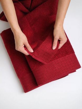 Элегантный жаккардовый бордюр с вышивкой и изысканным орнаментом придает полотенцам особый шарм, подчеркивая их статус и стиль. Однотонная фактура в благородном бордовом оттенке гармонично впишется в любой интерьер, добавит тепла и уюта, а также подчеркнет индивидуальность владельца. Универсальность размеров (50х90 см и 70х140 см) делает комплект практичным выбором для всей семьи: удобно использовать как для лица, так и для тела.