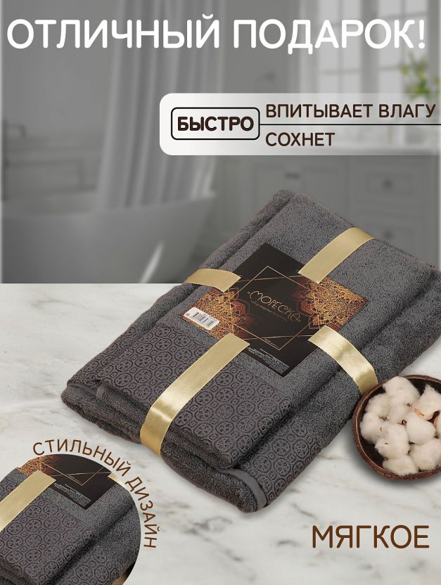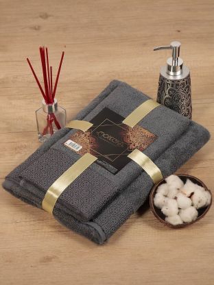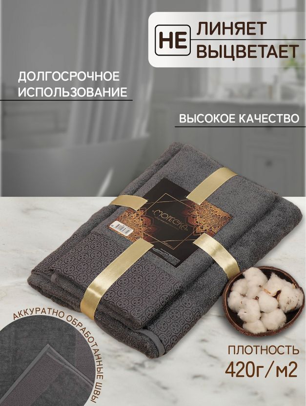 Набор полотенец 2 шт, 50х90, 70х140 см, 100% хлопок, 420 г/м2, Silvano, Мореска, темно-серый, Узбекистан