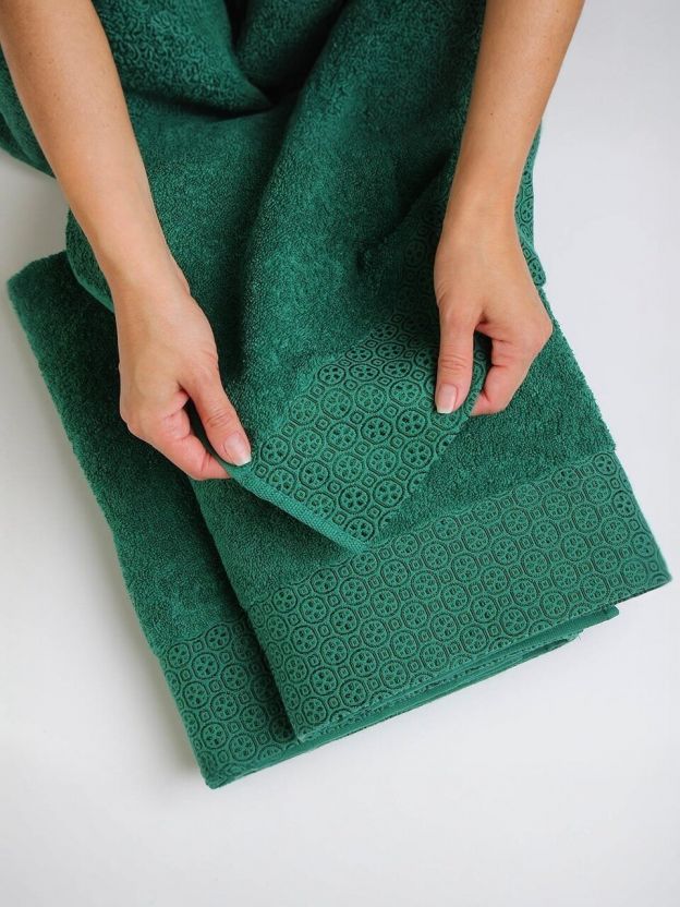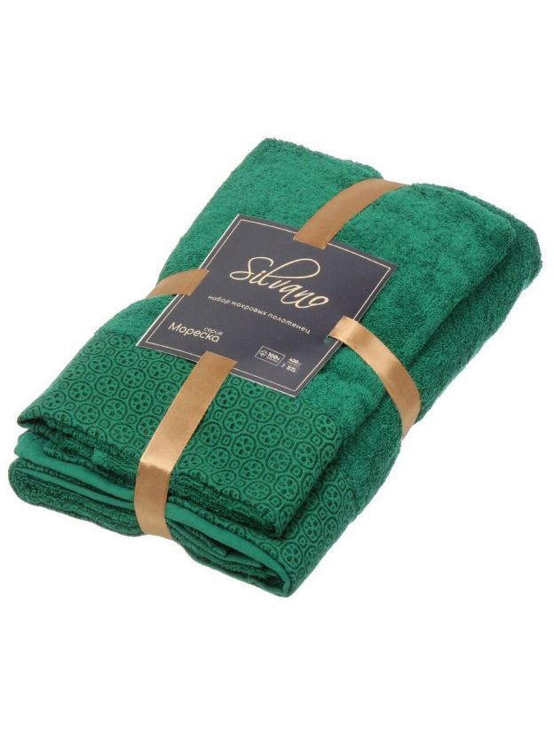 Набор полотенец 2 шт, 50х90, 70х140 см, 100% хлопок, 420 г/м2, Silvano, Мореска, темно-зеленый, Узбекистан