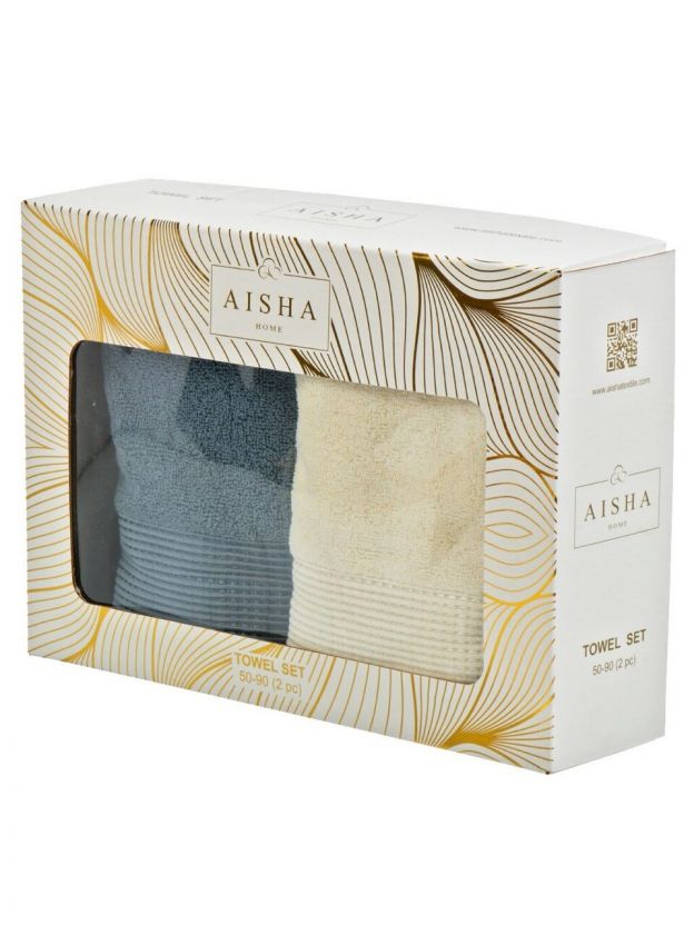 Набор полотенец 2 шт, 50х90 см, 100% хлопок, 500 г/м2, Элегант, серо-голубой-кремовый, Узбекистан