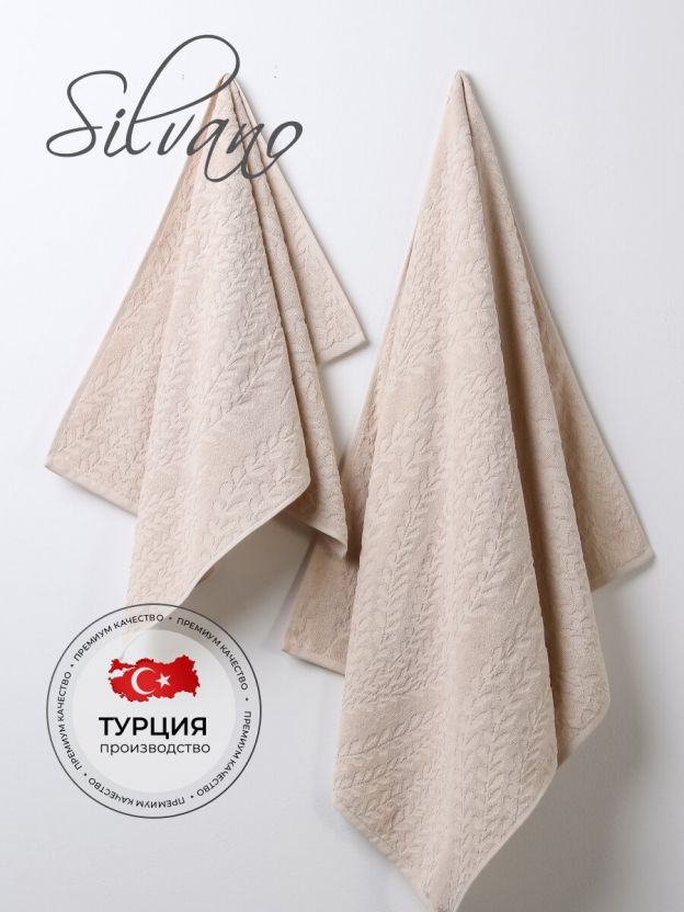 Набор полотенец 2 шт, 50x90, 70x140 см, 100% хлопок, 450 г/м2, Silvano, Флер, бежевый, Турция