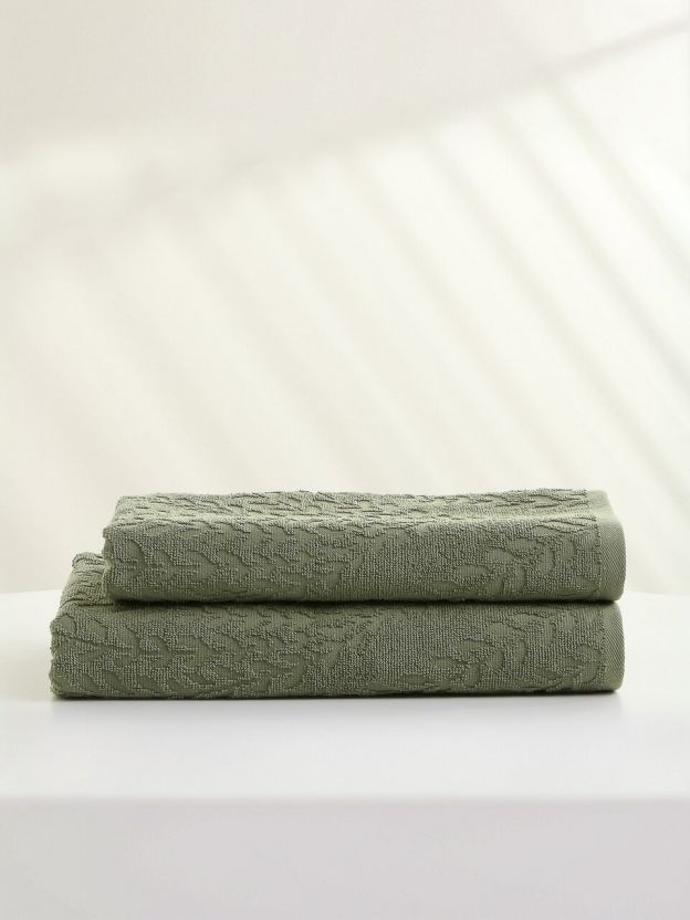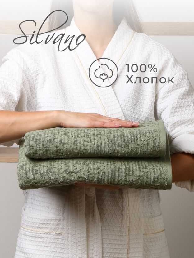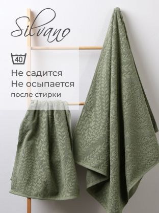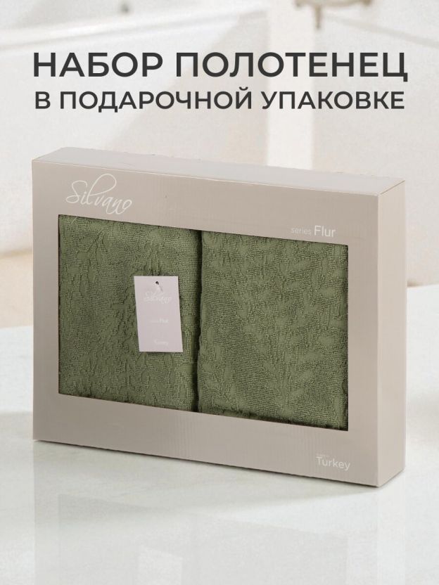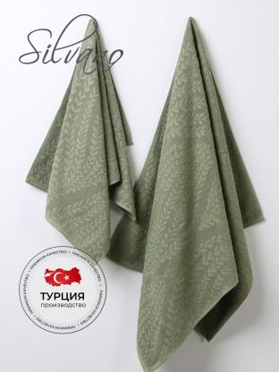 Набор полотенец 2 шт, 50x90, 70x140 см, 100% хлопок, 450 г/м2, Silvano, Флер, зеленый, Турция