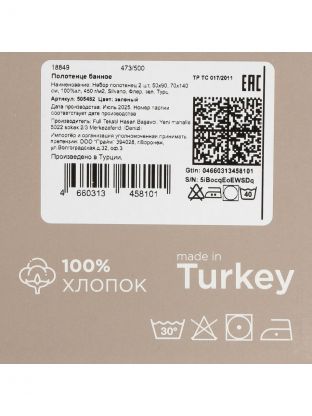 В наборе используются полотенца из 100% натурального хлопка турецкого производства, плотность ткани — 450 г/м2. Это обеспечивает отличную впитываемость и долговечность.