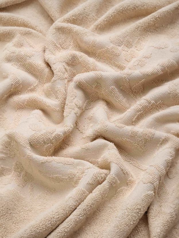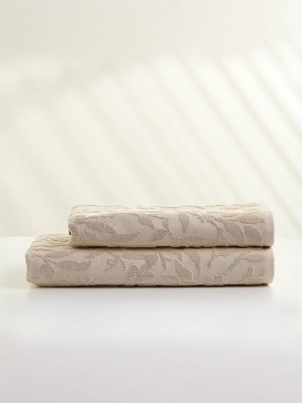 В отличие от синтетических аналогов, натуральный хлопок быстрее сохнет, не вызывает раздражения и не теряет цвет после стирки. Если вы выбираете, чем отличается полотенце для дома и дачи, обратите внимание на универсальные размеры: одно полотенце идеально для лица и рук, второе — для тела. Лаконичный бежевый цвет и изысканный рисунок "цветы" впишутся в любой интерьер.