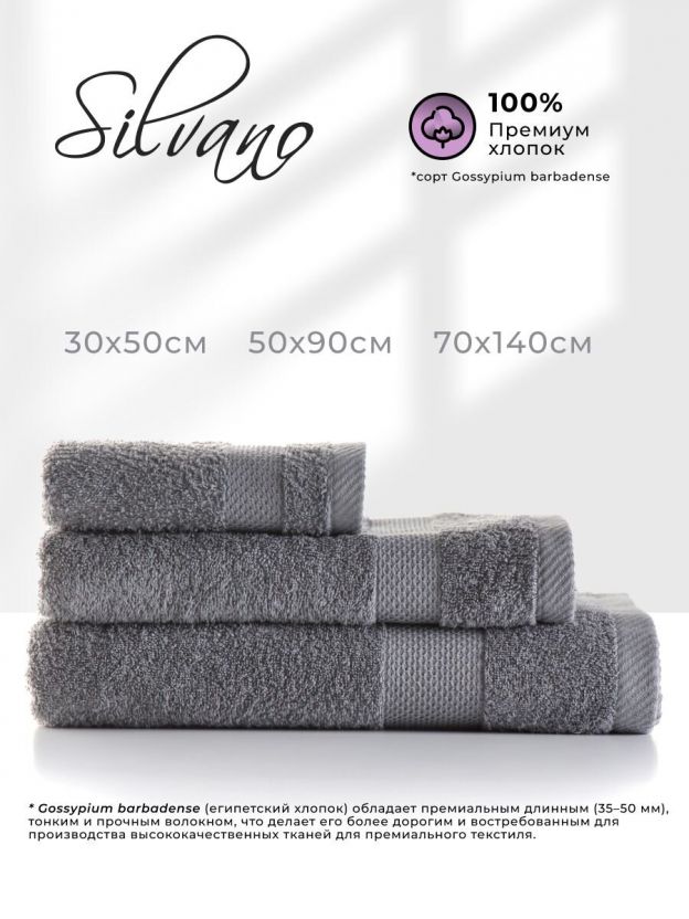 Набор полотенец 3 шт, 30х50, 50х90, 70х140 см, 100% хлопок, 400 г/м2, Silvano, Грация, серый, Узбекистан