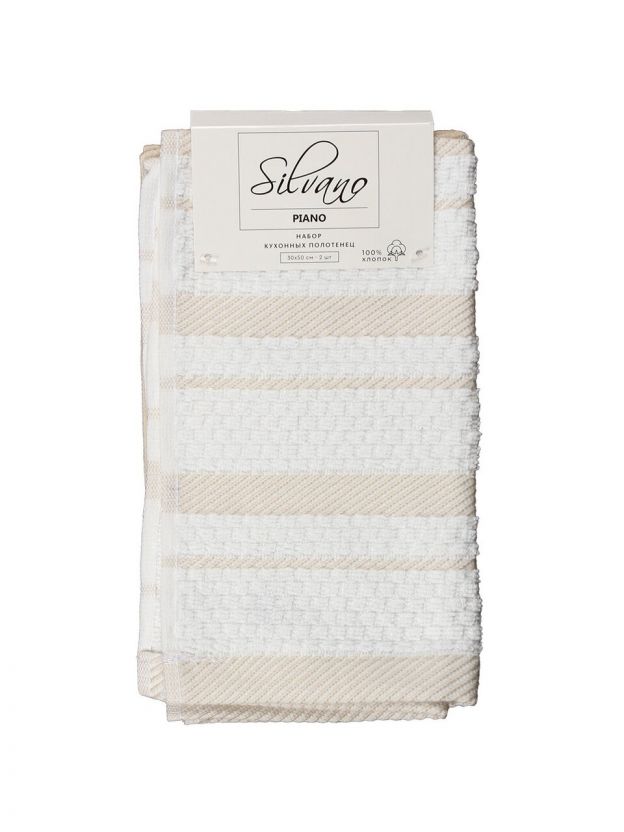 Набор кухонных полотенец Silvano Piano 2 шт 30х50 см — 100% хлопок, оптимальная плотность 400 г/м2, стильный бело-бежевый, для дома и дачи.