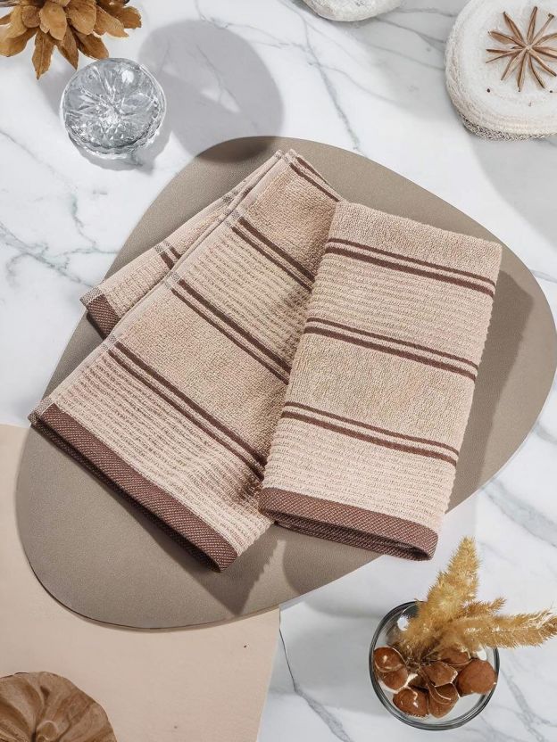 Набор полотенец кухонных 2 шт, 40х50 см, махровый, 100% хлопок, 420 г/м2, Silvano, Aura, бежевый, полосы, Узбекистан