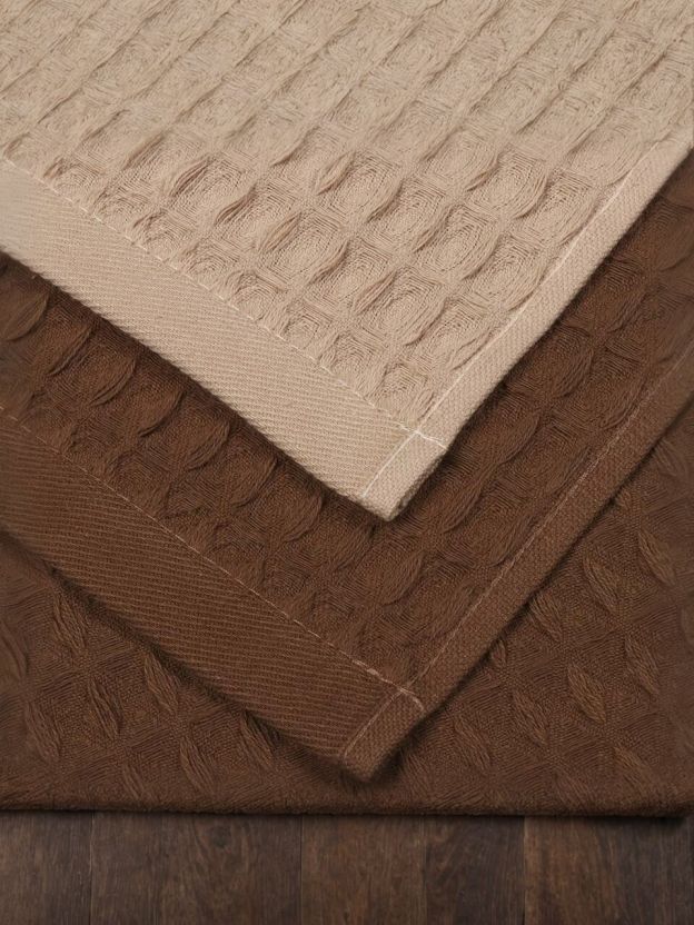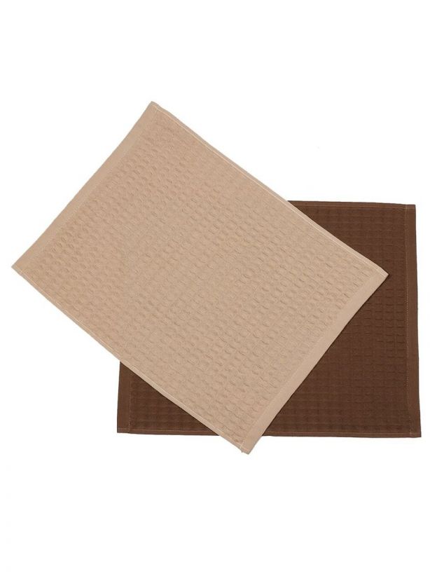 Набор полотенец кухонных 2 шт, 40х50 см, вафельный, 100% хлопок, 300 г/м2, Silvano, Лея, бежевый, коричневый, Узбекистан