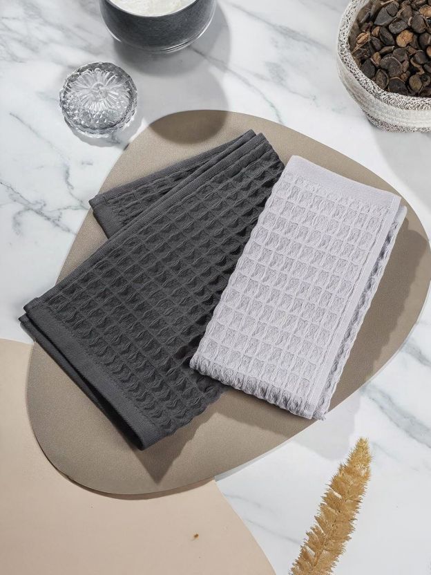 Набор полотенец кухонных 2 шт, 40х50 см, вафельный, 100% хлопок, 300 г/м2, Silvano, Лея, светло-серый, серый, Узбекистан