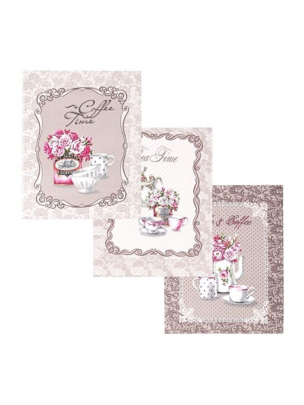 Набор полотенец кухонных 3 шт, 45х60 см, рогожка, 100% хлопок, АртДизайн, Прованс, Россия