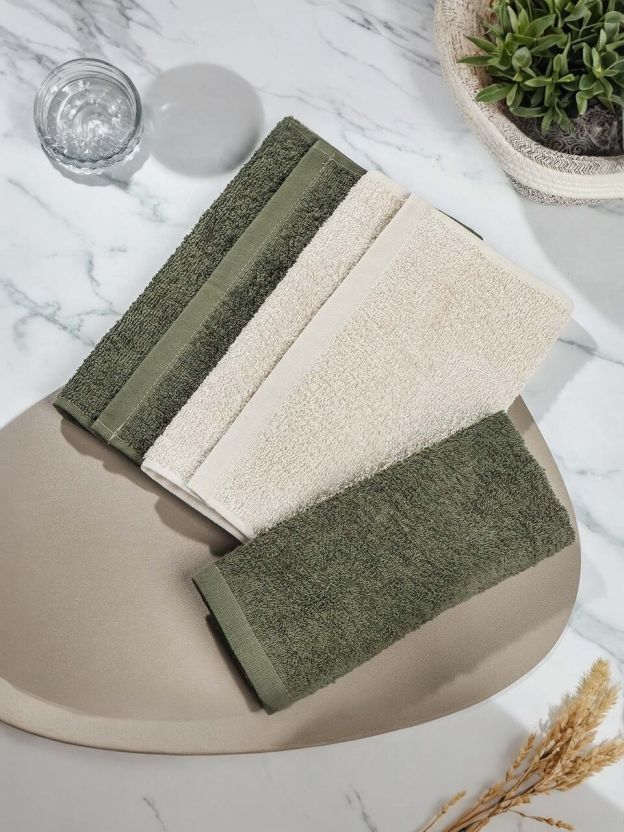 Набор полотенец кухонных 3 шт, махровый, 100% хлопок, 400 г/м2, Silvano, Pollen, темно-зеленый, молочный, Узбекистан