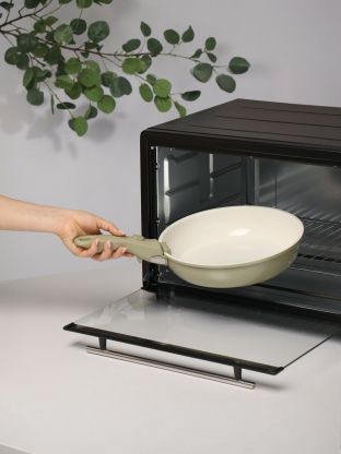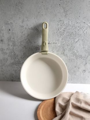 Толстостенный литой алюминий 2,5 мм, керамическое антипригарное покрытие, жаропрочная внешняя отделка и индукционный диск из стали 430 обеспечивают долговечность и универсальность.