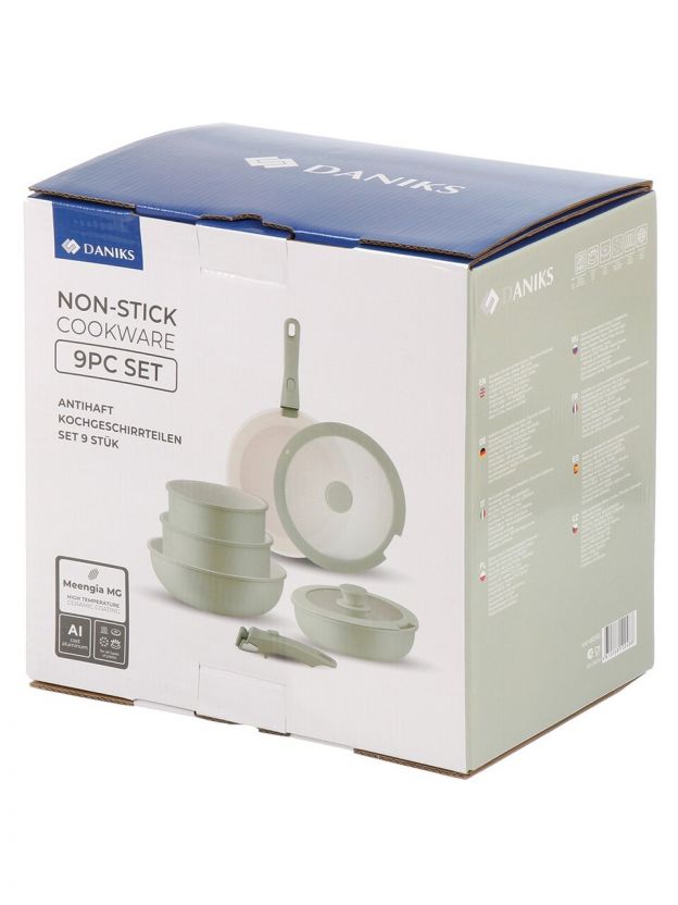 Набор посуды алюминий, антипригарное покрытие, 9 предметов, индукция, Daniks, GS-11078-9PC-green