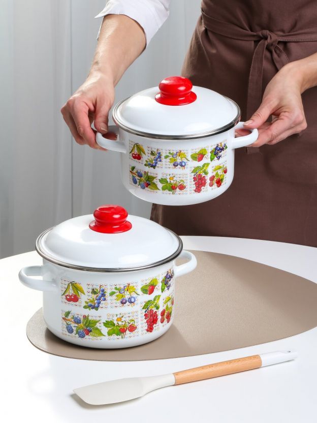 Набор эмалированной посуды СтальЭмаль «Вкус лета», 2 кастрюли (2 и 3 л) для индукционных плит — идеальный выбор для дома, дачи и подарка.