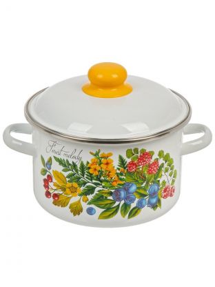 Набор посуды эмалированная сталь, 2 предмета, кастрюли 3,4 л, индукция, СтальЭмаль, №43 Лесная мелодия, 1KB431M, белый