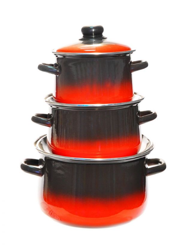 Набор посуды эмалированная сталь, 3 предмета, индукция, СтальЭмаль, Кармен, 1с405