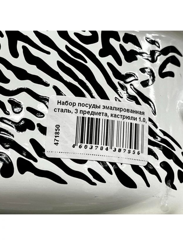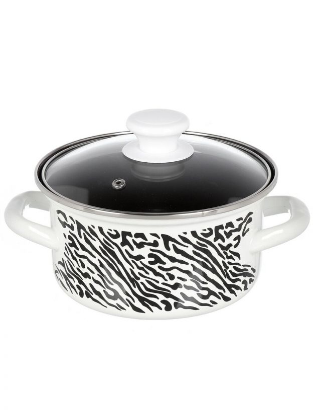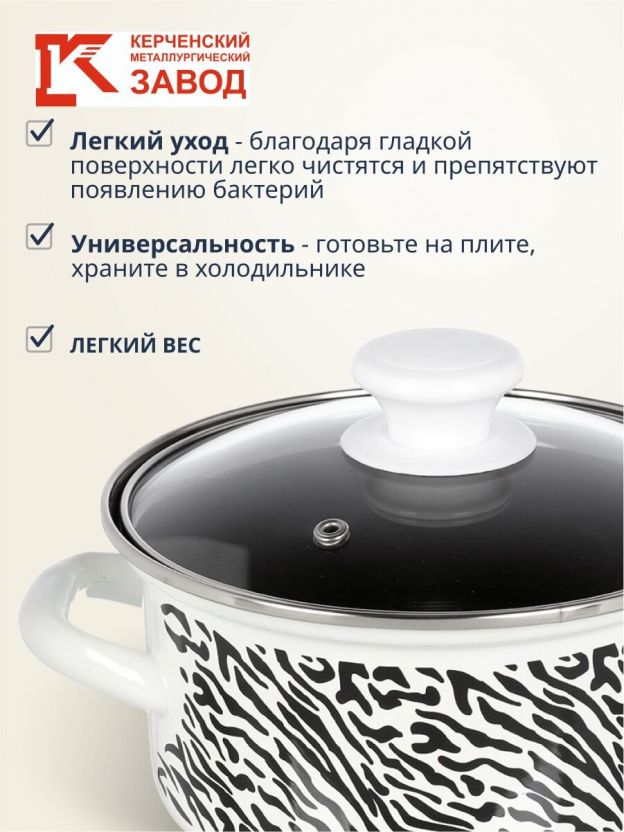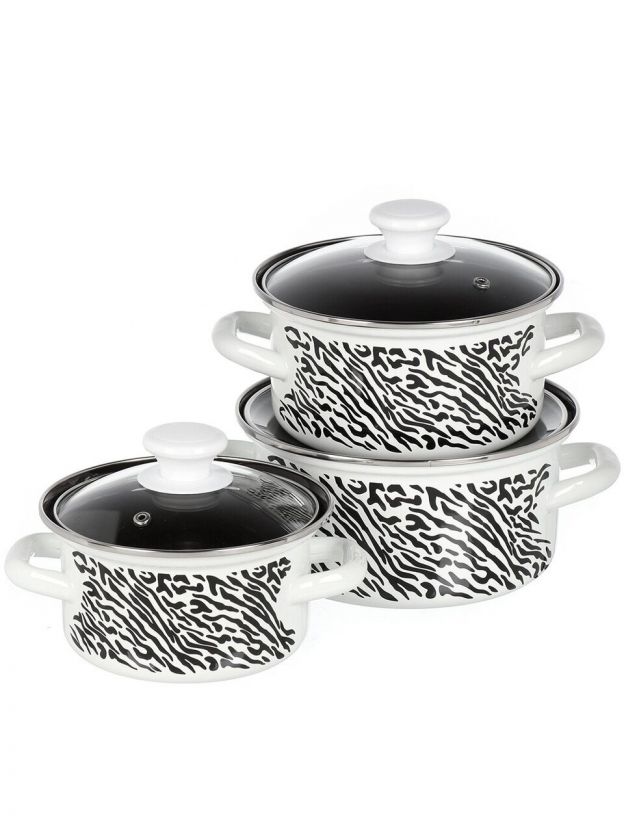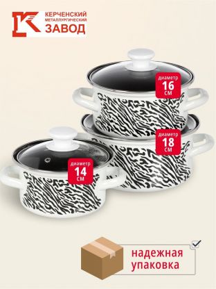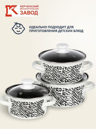 Набор посуды эмалированная сталь, 3 предмета, кастрюли 1.0, 1.5, 2.3 л., МП, Керченский металлургический завод, Зебра-1-Экстра, белый
