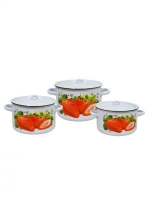 Набор посуды эмалированная сталь, 3 предмета, кастрюли 1.5,2.9,4.5 л, индукция, СтальЭмаль, Клубника садовая, 1с33