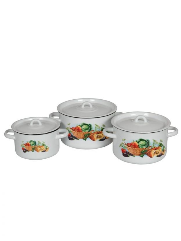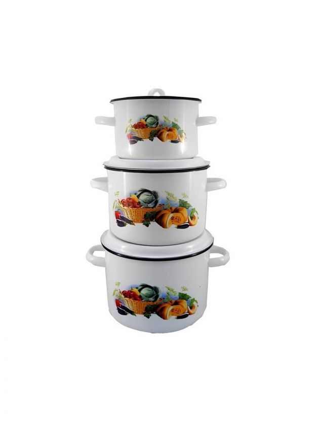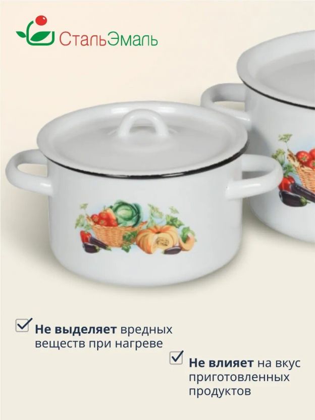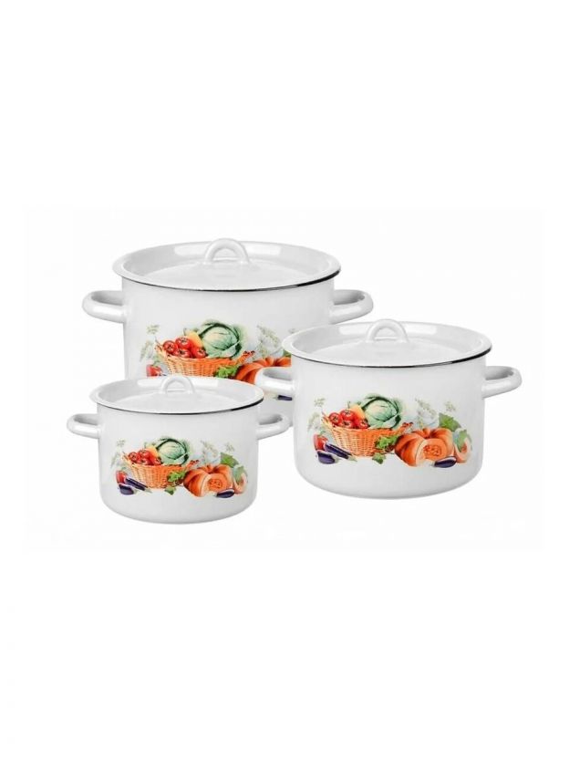 Набор посуды эмалированная сталь, 3 предмета, кастрюли 1.5,2.9,4.5 л, индукция, СтальЭмаль, Урожай, 1с33