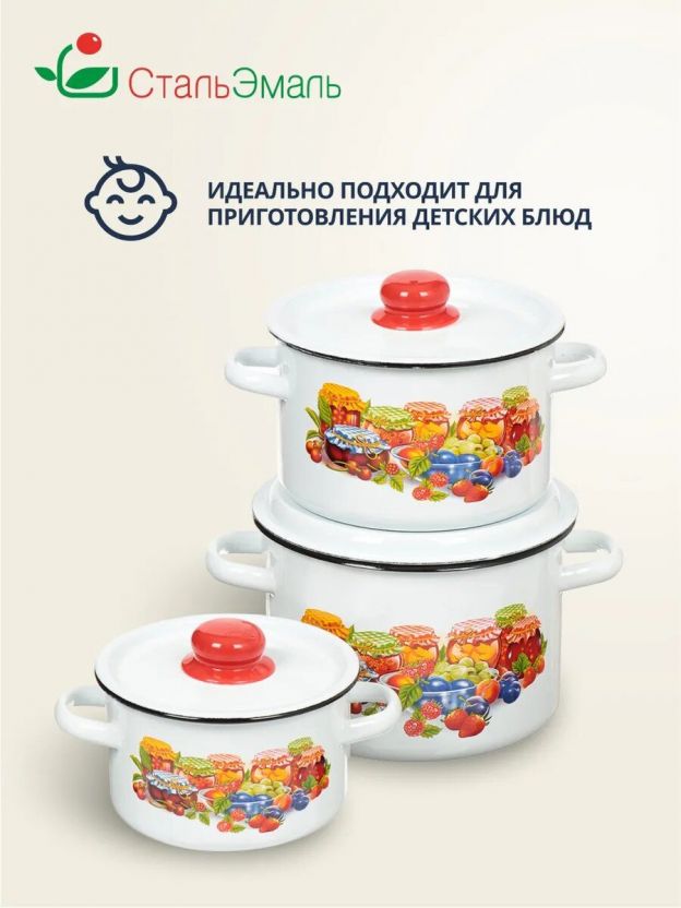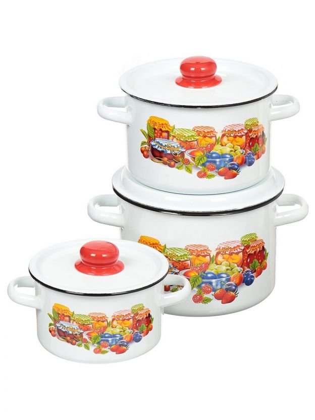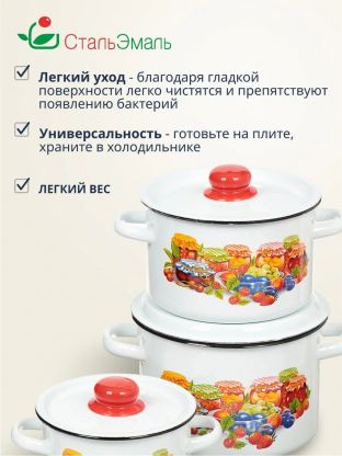Набор посуды эмалированная сталь, 3 предмета, кастрюли 1.5,2.9,4.5 л, индукция, СтальЭмаль, Варенье, 1с144