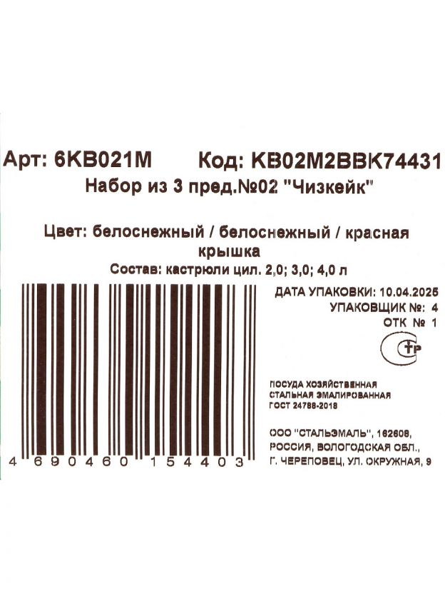 Набор эмалированной посуды СтальЭмаль «Чизкейк» 3 предмета: идеальный выбор для кухни, дачи и подарка — кастрюли 2, 3, 4 л для всех типов плит, включая индукцию. Почему выбирают: Уникальный дизайн «Чизкейк» — современный акцент на вашей кухне, подходит для сервировки и хранения. Три кастрюли разных объёмов (2, 3 и 4 л) из эмалированной стали: долговечность, устойчивость к царапинам, безопасное приготовление. Универсальность: для дома, дачи, подарка; совместимы с газовыми, электрическими и индукционными плитами. Набор посуды эмал сталь СтальЭмаль «Чизкейк» (6KB021M) — это оптимальный выбор для тех, кто ищет, какую посуду выбрать для ежедневного приготовления и хранения еды. Эмалированная сталь устойчива к перепадам температур и не впитывает запахи, что важно для безопасности и сохранения вкуса блюд. Благодаря разным объёмам кастрюль вы легко подберёте подходящий размер для супа, гарнира или компота. Покупатели часто спрашивают: подходит ли этот набор для индукционной плиты? Да, дно специально разработано для всех типов варочных поверхностей, включая индукцию. В отличие от посуды из алюминия или керамики, эмалированная сталь легче очищается, не взаимодействует с продуктами и служит дольше. Как использовать набор? Просто — кастрюли можно применять для варки, тушения, стерилизации, а также для хранения продуктов в холодильнике. Если вы выбираете, что лучше купить для дачи или ищете подарок на новоселье, набор посуды СтальЭмаль «Чизкейк» — практичное и стильное решение. Закажите выгодно с быстрой доставкой и уверены в качестве, подтверждённом производителем. Частые вопросы: Можно ли использовать набор на индукционной плите? Да, кастрюли подходят для индукции, газа, электричества и стеклокерамики — стальное дно обеспечивает равномерный нагрев. В чём выгода покупки набора, а не отдельных кастрюль? Вы получаете три оптимальных объёма для разных блюд, экономите на комплекте и решаете задачи хранения и приготовления на одной кухне. Каковы размеры и объёмы кастрюль? В комплекте кастрюли объёмом 2, 3 и 4 литра, материал — эмалированная сталь, устойчивы к коррозии и легко моются.