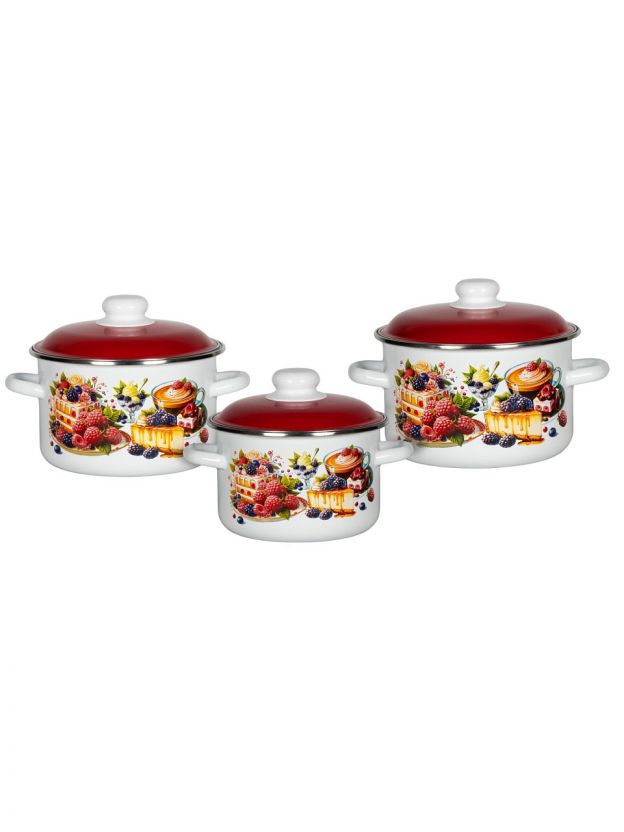 Набор посуды эмалированная сталь, 3 предмета, кастрюли 2, 3, 4 л, индукция, СтальЭмаль, Чизкейк, 6KB021M
