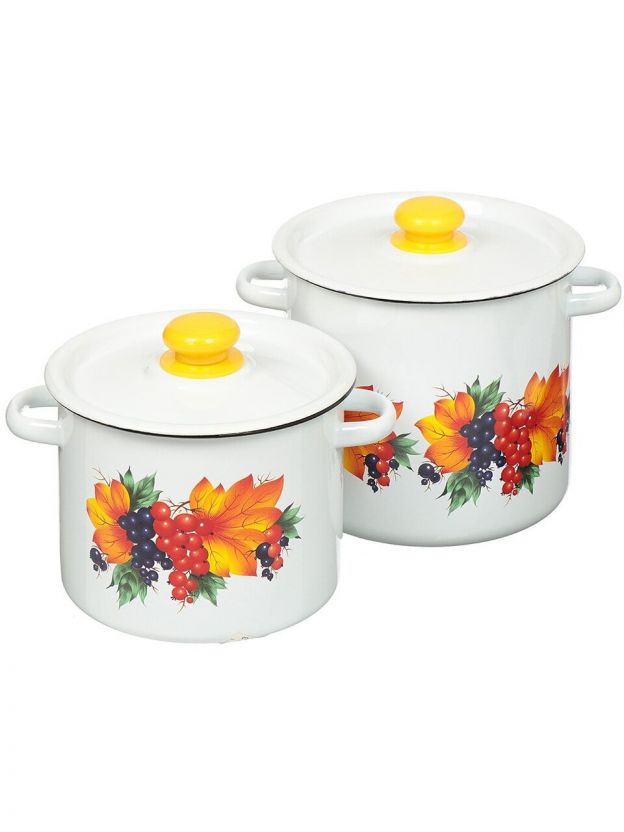 Набор эмалированной посуды Сибирские товары Смородина 20 — 4 предмета для кухни и дачи: объём 3.5 и 5.5 л, долговечность, цена без переплат.