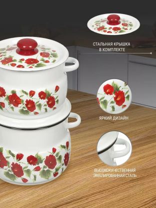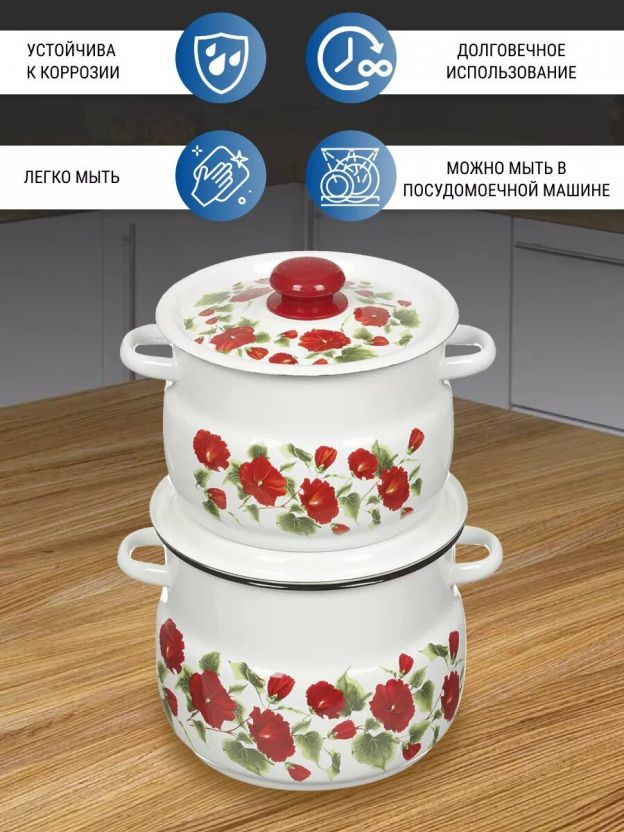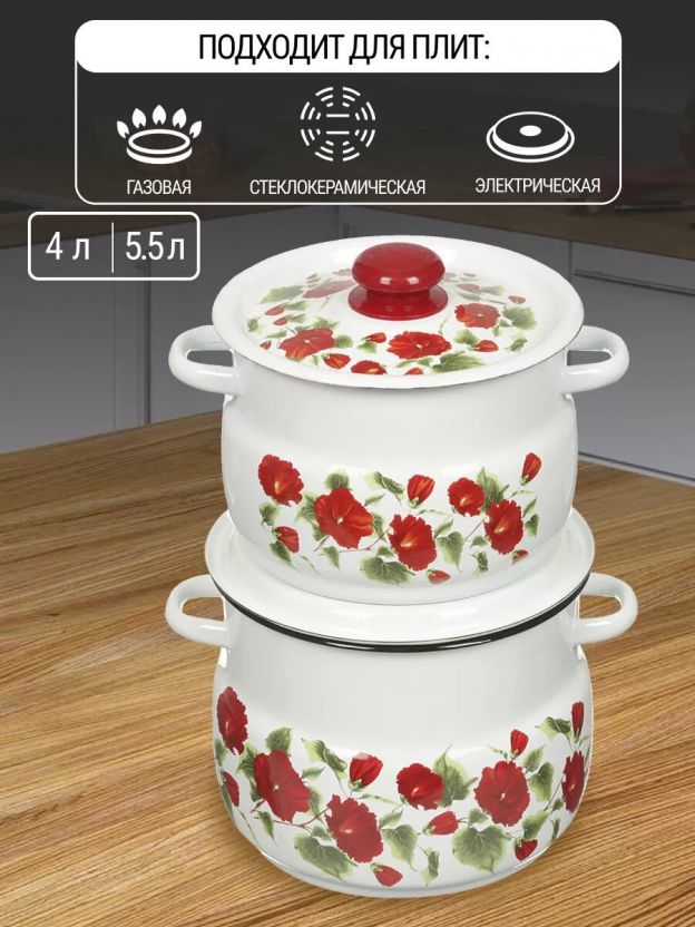 Набор эмалированной посуды Сибирские товары Рамо 10 (4 предмета, кастрюли 4 и 5,5 л) — идеальное решение для дома и дачи: долговечность, стиль, доступная цена.