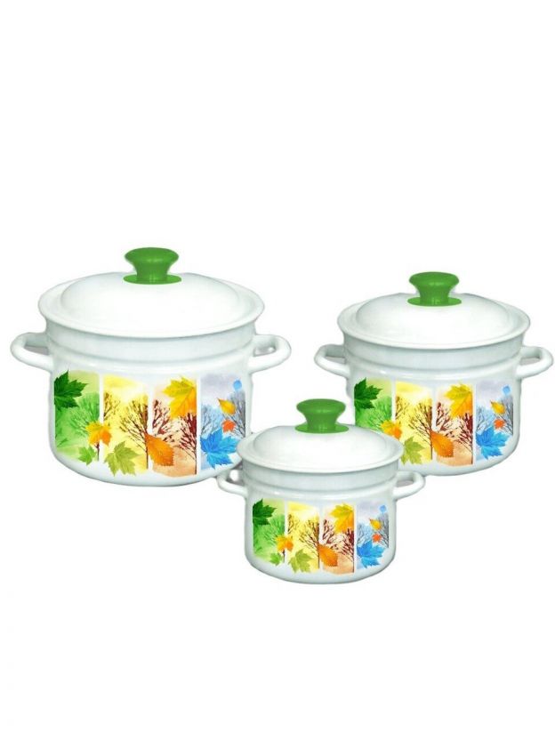 Универсальные объёмы (2, 3, 5 л) и прочная эмаль делают набор отличным выбором для разных сценариев: готовьте супы, каши, компоты или тушёные блюда без риска пригорания и впитывания запахов.