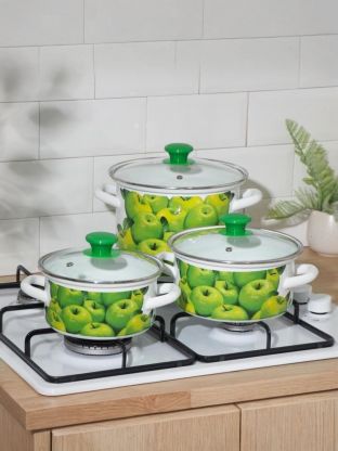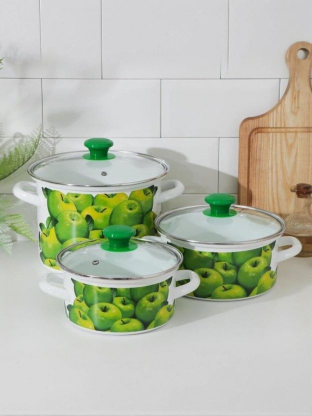 Чем отличается этот набор от аналогов? В отличие от посуды с антипригарным покрытием, эмалированная сталь не боится металлических ложек и не выделяет вредных веществ при перегреве. Если вы спрашиваете, подходит ли набор для индукционных плит — этот комплект рассчитан на газовые, электрические, стеклокерамические и галогеновые поверхности, но не для индукции. Как использовать кастрюли? Они идеальны для варки, тушения, приготовления супов, компотов и заготовок на зиму. Приятный белый цвет и стильный декор делают набор отличным подарком на новоселье.
