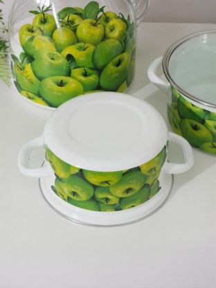 Эмалированная сталь с рисунком «Поздние яблоки» — устойчивость к царапинам, безопасное хранение и готовка без посторонних запахов