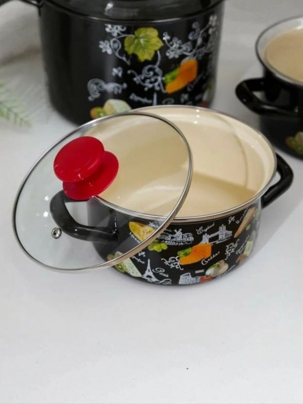 В отличие от аналогов с антипригарным покрытием, этот комплект не боится металлических ложек и легко очищается. Для тех, кто спрашивает «как использовать эмалированные кастрюли» или «подходит ли для стеклокерамической плиты», ответ — да, набор совместим с газовыми, электрическими, стеклокерамическими и галогеновыми плитами, но не подходит для индукции. Мытьё в посудомоечной машине не рекомендуется, что продлевает срок службы эмали.