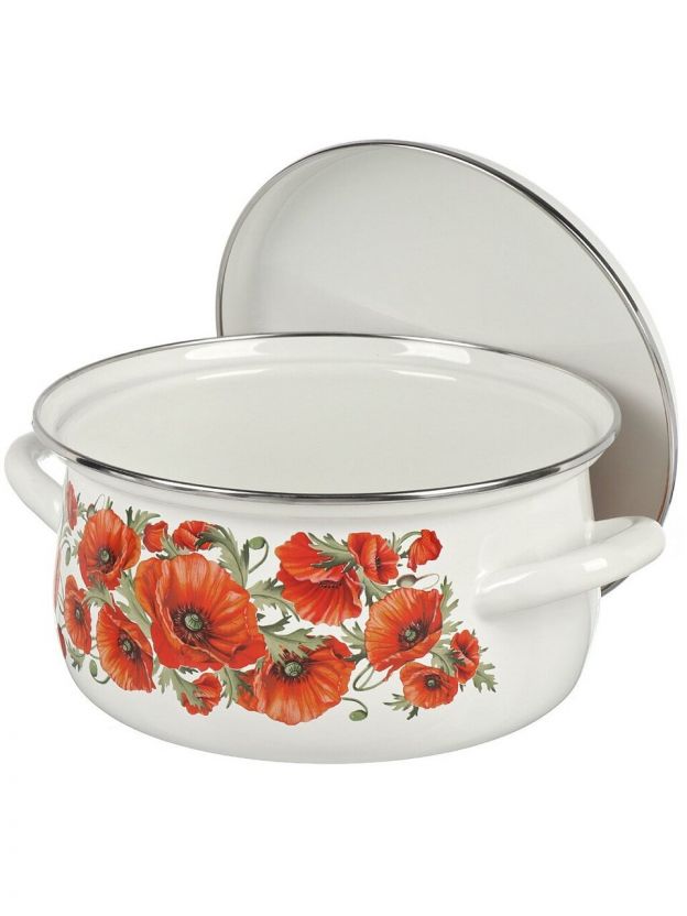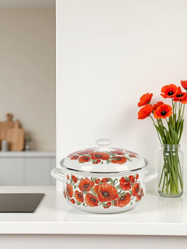 Набор посуды Daniks «Маковый цвет-1» — это удачный выбор для тех, кто ищет, какую кастрюлю купить для дома или дачи недорого и с гарантией долговечности. Эмалированная сталь устойчива к коррозии и не впитывает запахи, а яркий красный цвет с декоративным рисунком сохраняет привлекательность даже при интенсивном использовании. В отличие от обычных алюминиевых или стеклянных аналогов, эмалированная сталь легче отмывается и не требует специальных средств по уходу.