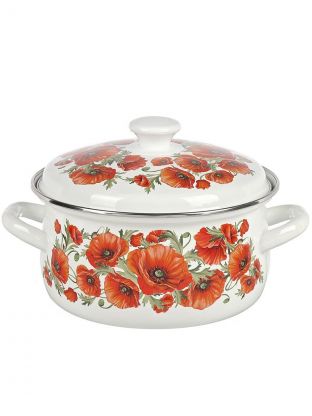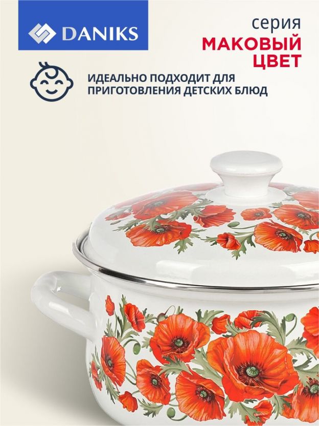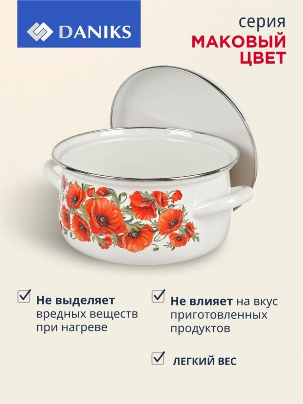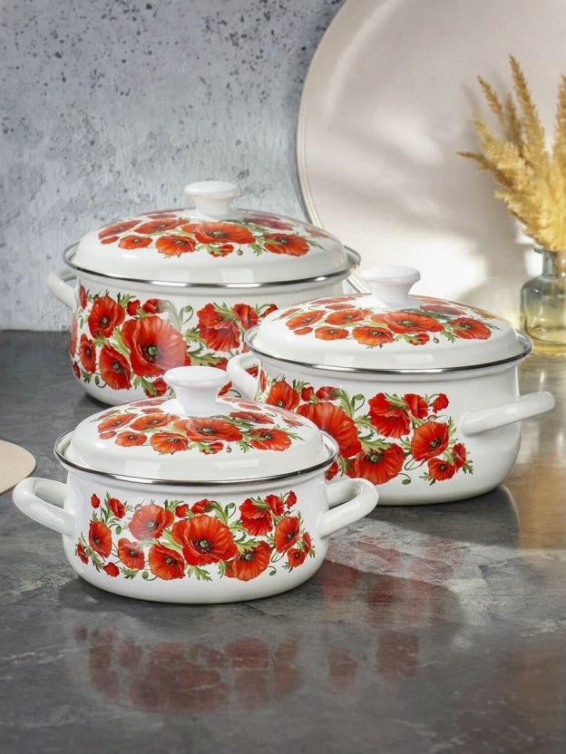 Набор кастрюль Daniks «Маковый цвет-1» из эмалированной стали: 6 предметов для стильной кухни, долговечность и универсальность по выгодной цене.