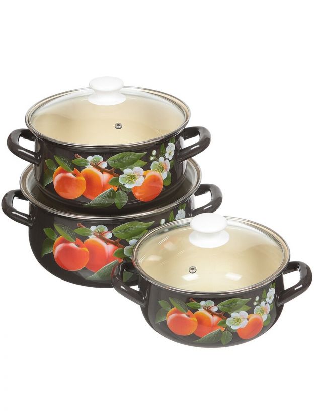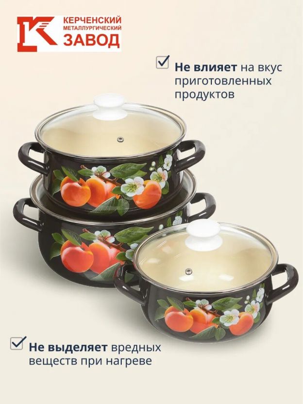 Набор посуды эмалированная сталь, 6 предметов, кастрюли 2,3,4 л., МП, Керченский металлургический завод, Абрикос-Экстра