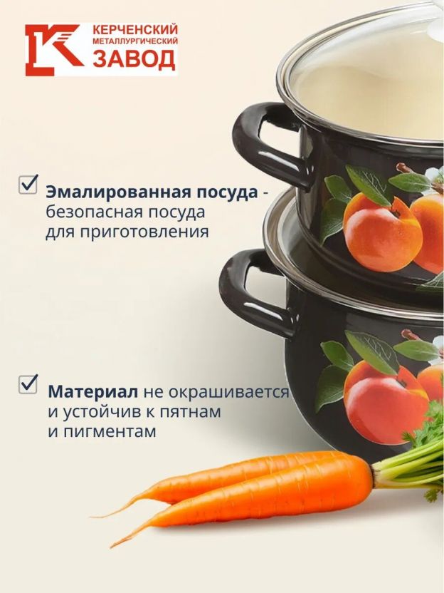Набор эмалированных кастрюль 6 предметов «Абрикос-Экстра», Керченский завод: идеальное решение для кухни, дачи и подарка. Прочный корпус, три объёма, стильный дизайн. Почему выбирают: Уникальный дизайн «Абрикос-Экстра» — узнаваемый стиль и долговечная эмаль от Керченского металлургического завода Три кастрюли 2, 3 и 4 л с крышками из закалённого стекла: безопасное приготовление и лёгкий контроль за процессом Универсальный выбор для дома, дачи и подарка: подходит для газовых, электрических, стеклокерамических и галогеновых плит Набор посуды из эмалированной стали «Абрикос-Экстра» — это оптимальный выбор для тех, кто ищет долговечные кастрюли для ежедневного использования. Эмалированная поверхность устойчива к коррозии, не впитывает запахи и проста в уходе. Благодаря объёмам 2, 3 и 4 литра можно удобно готовить разные блюда для семьи любого размера. Комплектация с прочными стеклянными крышками обеспечивает безопасность и визуальный контроль за приготовлением. Если вы ищете, какую кастрюлю выбрать для дачи или дома, обратите внимание на этот набор: он не подходит для индукционных плит, но идеально работает на газовых, электрических и стеклокерамических поверхностях. В отличие от аналогов с антипригарным покрытием, эмалированная сталь не выделяет вредных веществ при нагреве и служит дольше при правильном уходе. Как использовать набор? Просто мойте вручную и избегайте резких перепадов температуры — эмаль сохранит свой внешний вид на годы. Этот комплект отлично подходит как для повседневной кухни, так и в качестве практичного подарка. Классический чёрный цвет и яркий декор «Абрикос-Экстра» украсят любой интерьер и подчеркнут заботу о близких. Закажите набор эмалированных кастрюль с доставкой — и наслаждайтесь удобством, безопасностью и стилем каждый день. Частые вопросы: Можно ли использовать набор на индукционной плите? Нет, кастрюли из набора «Абрикос-Экстра» не подходят для индукционных плит. Они совместимы с газовыми, электрическими, стеклокерамическими и галогеновыми плитами. Чем выгоден набор для дачи или подарка? Универсальные объёмы, прочная эмаль, яркий дизайн и надёжность делают этот комплект отличным выбором для дачи, большой семьи или в качестве подарка на новоселье. Какой объём у каждой кастрюли? В набор входят три кастрюли объёмом 2, 3 и 4 литра, каждая с отдельной стеклянной крышкой.